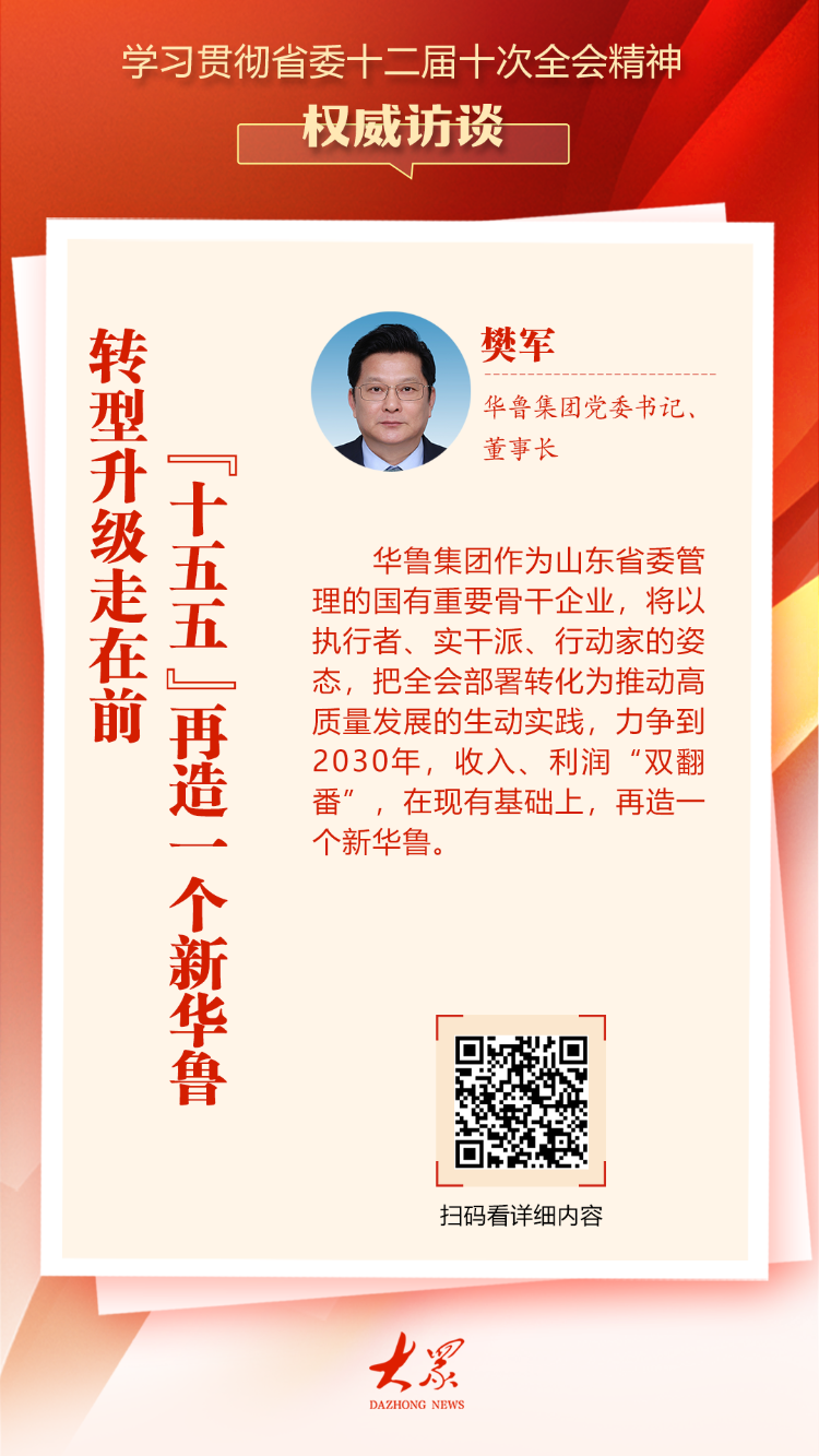 省委十二届十次全会对加快建设现代产业体系作出部署。建议优化升级传统产业,培育壮大新兴产业,着眼未来产业布局。展现了“走在前头、领跑”的使命和“举旗前行,只有旗帜才能胜利”的坚定信心。作为山东省委管理的重要国有企业,华鲁集团将作为落实者、创造者、行动者,在推动高质量发展的光明实践中转变全会部署,力争2030年收入利润“翻一番”,在现有基础上建设新华鲁。一是发挥产业优势,引领培育新的生产力素质。 “十四五”改革升级后,战略华录集团新能源、新材料等新兴产业已占据“半壁江山”。未来五年,我们还将加快在精细专用化学品、电子新材料领域的布局,进入全球化工企业50强。同时,我们将进一步拓展生物制造领域,以生物合成技术为切入点,加快研发创新,力争将更多生物质新产品推向市场。二是发挥环保优势,引领美丽山东建设。我们将继续发挥环保优势,在生态修复与治理、生物多样性保护、司法检验鉴定、数字化环保服务等领域全力发力,拓展碳监测、碳排放等专业服务能力。碳减排,推动环保板块IPO上市,链接高端资源服务山生生态发展。绿水青山、金山银山。三是充分发挥港澳关联企业优势,引领高度对外开放。用好港澳平台资源,对于山东融入大湾区、打造高水平开放新平台十分重要。我们将提供企业“超级联络”文件全文——联系港澳,保障“港澳山东周”等经贸往来、科技合作和社会交流活动,发挥山东连接港澳的能力,推动各项合作成果落到实处,吸引更多港澳青年来港澳旅游。澳门对山东创业,打造港澳对山东投资的“桥梁”、引进人才的“水库”、金融资本的“水库”、对外开放的“新窗口”。 (大众新闻记者陈小万编译)