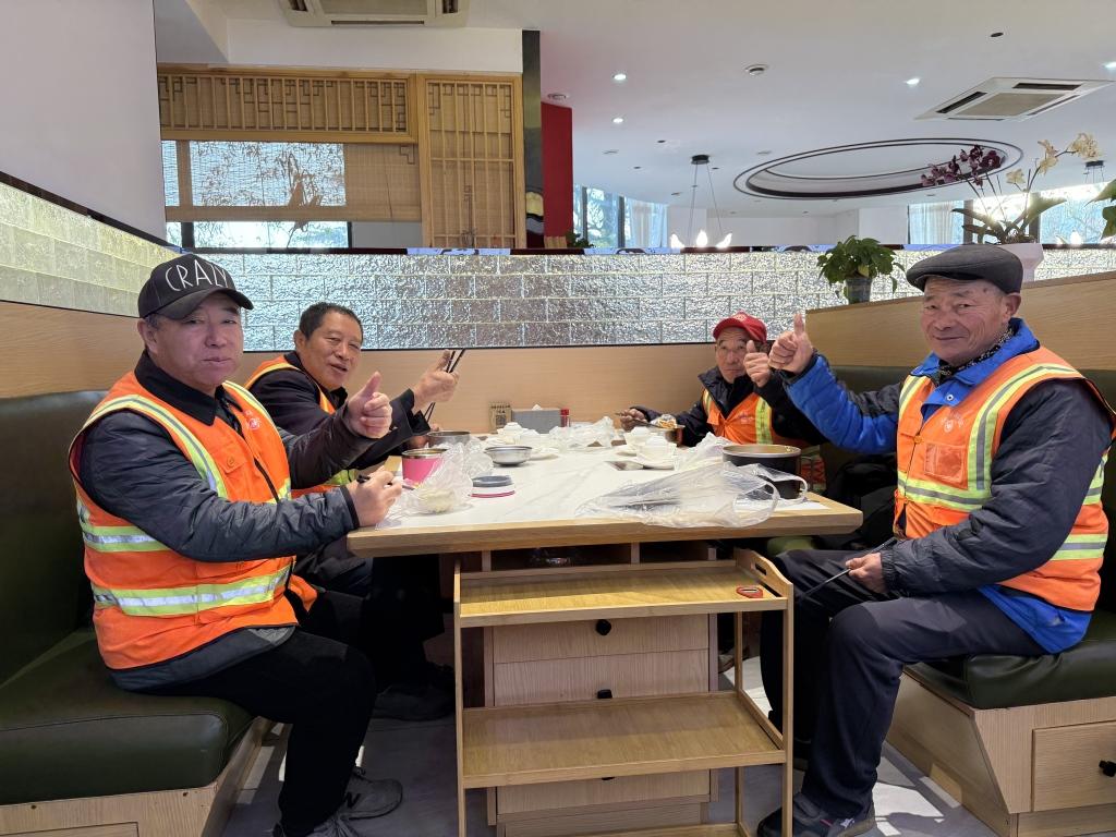 62岁的环卫工人黄凤本没想到,今年冬天他还能吃到免费的早餐。和黄凤本一样,胶州市新城区的其他62名环卫工人也领取了免费早餐。寒冬里为环卫工人提供早餐的人是胶州鸽子厨房的老板匡德金。 “这个冬天的每天早上,环卫工人都能享受到热气腾腾、美味可口的免费早餐。”匡德进说道。吃完免费早餐后,环卫工们竖起了大拇指。初冬时节,我收到了“免费早餐”的通知。作为一名环卫工人,62岁的黄凤本没想到今年冬天能吃到免费的早餐。黄凤本是胶州市新城区环卫公司的一名普通环卫工人。 12月9日上午,他接到环卫公司负责人的通知,今年冬天免费吃早餐。和黄凤本一样,还有62名环卫工人没有受到影响。那天。在黄凤本看来,“免费早餐”是“意料之外的”。环卫工人今年冬天第一次吃到免费早餐。 “当时环卫工人很高兴。”黄凤本说。过去,我们一大早就起床扫马路。天冷了,有时没时间做早餐。吃着免费的早餐,我们的肚子饱了,身体也暖和了。环卫公司负责人透露,“免费早餐”的提供者是胶州鸽子酒楼老板匡德进。 “三个包子,一碗斯尼岗巴瓦特人” 12月10日一大早,黄凤本和其他环卫工人一样早早起床。打扫完街道上自己负责的卫生区域后,他来到了胶州歌善坊酒楼。 “我早上七点到的。”黄凤本说道。黄凤本赶到的时候,歌善坊门口已经排起了长队。有法队伍里有他熟悉的环卫工人,也有一些陌生的面孔。现场,鸽子厨房老板匡德金拿着长勺将古尔送到排队的环卫工人手中。匡德金面前,许多员工和志愿者正在为环卫工人包着包子。 “每个人三个大包子,一碗稀饭,不够的话就来拿……”匡德进一边服务一边对环卫工人说。 “不想回家的可以在店里吃饭,外面冷,店里给你开空调,热乎乎的。” “让我们的家变得更美好。”不一会儿,已经排好队的黄风本来到了匡德金面前。 “谢谢老板给我们提供免费早餐。”黄凤本接过饭盒,当面向匡德进表示感谢。 “我们必须感谢你们在寒冷的天气里为清洁街道所做的努力和努力。”匡德金说:“我们尽力让您每天吃到第一顿热饭正在运转。让我们的家更美丽。”黄凤本和部分环卫工人领取了三个包子,走进餐厅一楼,在温暖的房间里享用今年冬天的第一顿免费早餐。为了让环卫工人今年冬天能吃上免费早餐,匡德进开始了冬后的筹划。“12月9日下午,我们为环卫工人做了300个白菜猪肉大包子。然后我们把包子装进保鲜盒里,为总共63名环卫工人准备了早餐。”匡德金说,“这是环卫工人今年冬天吃到的第一顿免费早餐。这个冬天,全体环卫工人将有一顿热气腾腾的免费早餐。”(半岛全媒体记者 王永端)